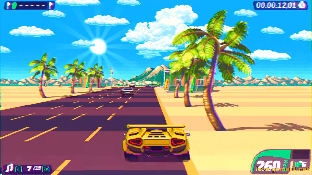 Два игровых режима и редактор трасс, шесть ретро-суперкаров, красивые пиксельные девушки,