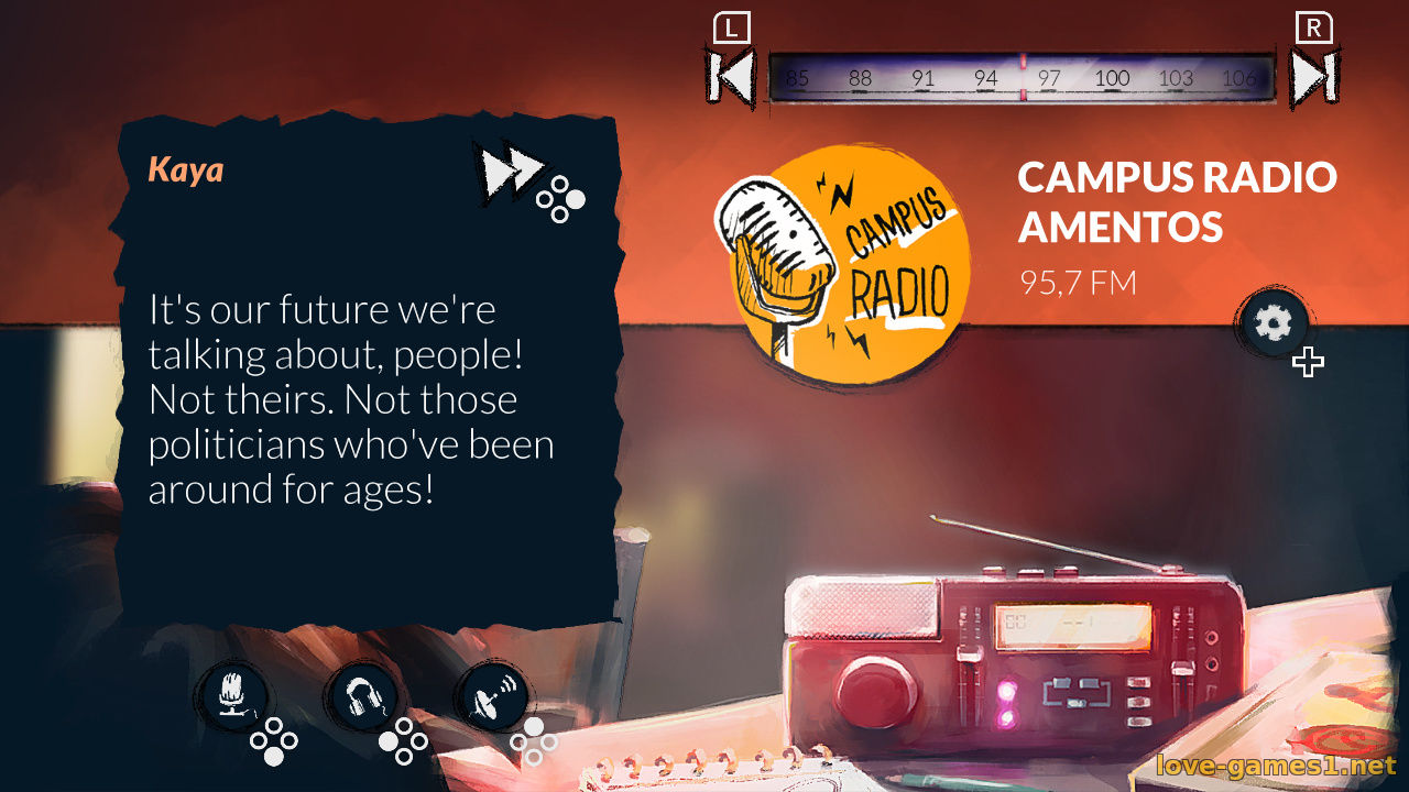 Используйте FM-волны, записывайте, перематывайте и воспроизводите необходимые отрезки передач, чтобы раскрыть участников заговора, политиков и подпольные ячейки. Перераспределяя информацию, вы сможете менять происходящее, и даже воздействовать на истории в их жизни.