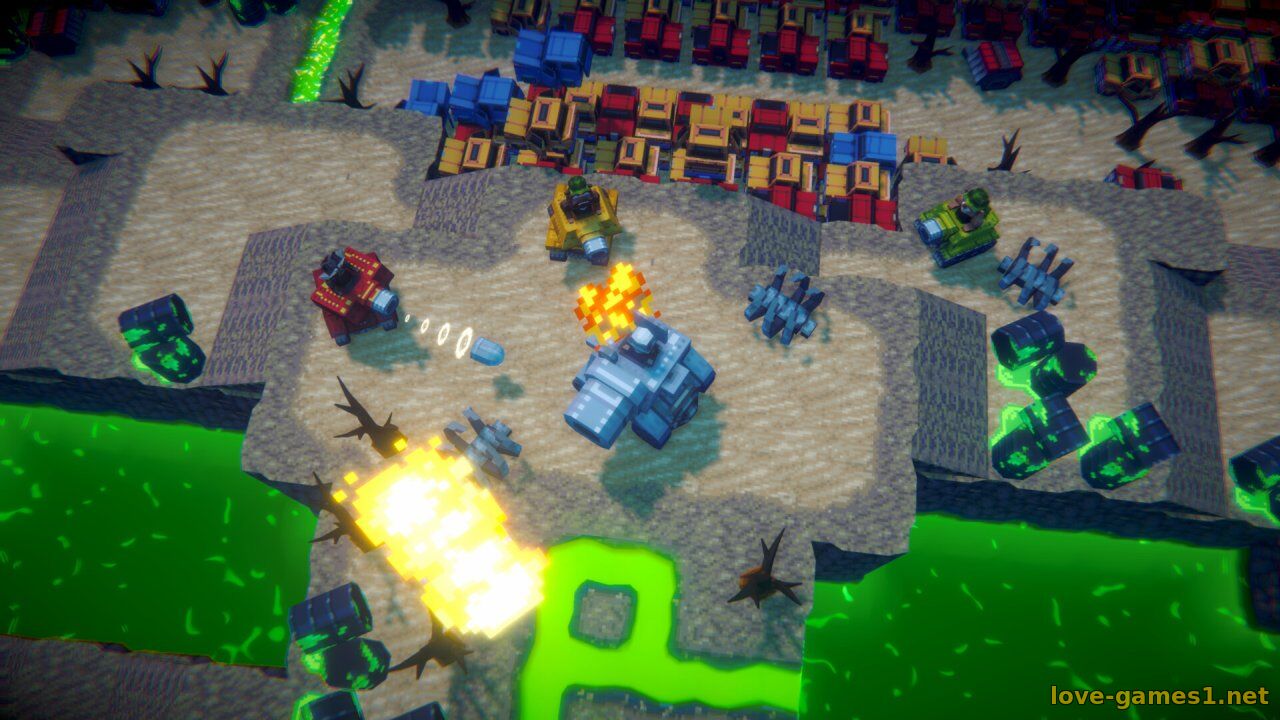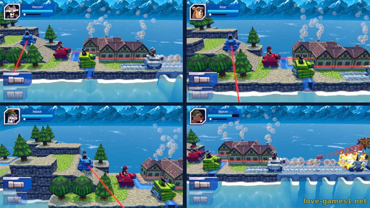 Весёлая аркада для 4 игроков!.. Сражайтесь с гигантскими механическими боссами, собирайте оружие и свой танк. Кроты объявили вам войну. Животный мир погрузился в хаос.