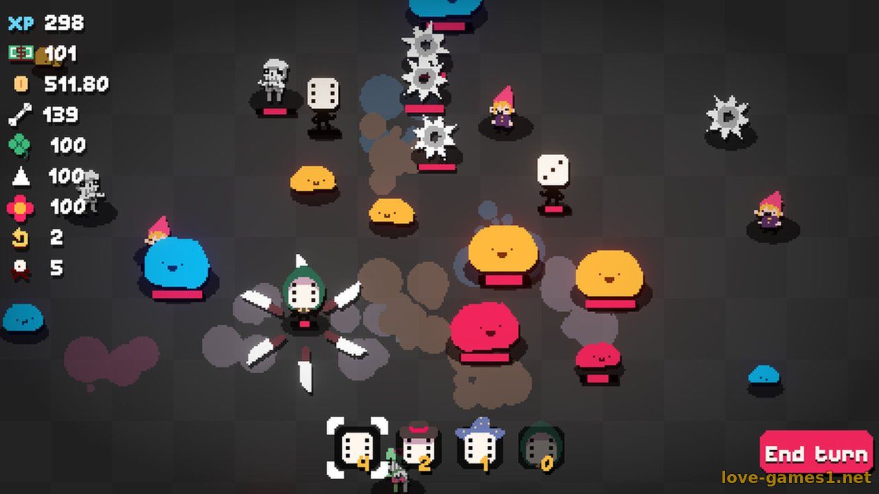 В Dice People вы будете бросать кубики, чтобы сокрушать орды врагов и добывать ценные ресурсы. Полученные числа трансформируются в опыт, который вы сможете потратить на улучшение своих способностей. Ваши кубики оживут, превратившись в отряды, готовые сражаться и приносить вам прибыль. Зарабатывайте деньги, побеждая врагов, и инвестируйте их в огромное древо навыков. Здесь вы найдете апгрейды, которые позволят вам получать больше денег за каждый бой, наносить больше урона, увеличить свою удачу при бросках и многое другое. Развивайте своего героя и становитесь непобедимым!..