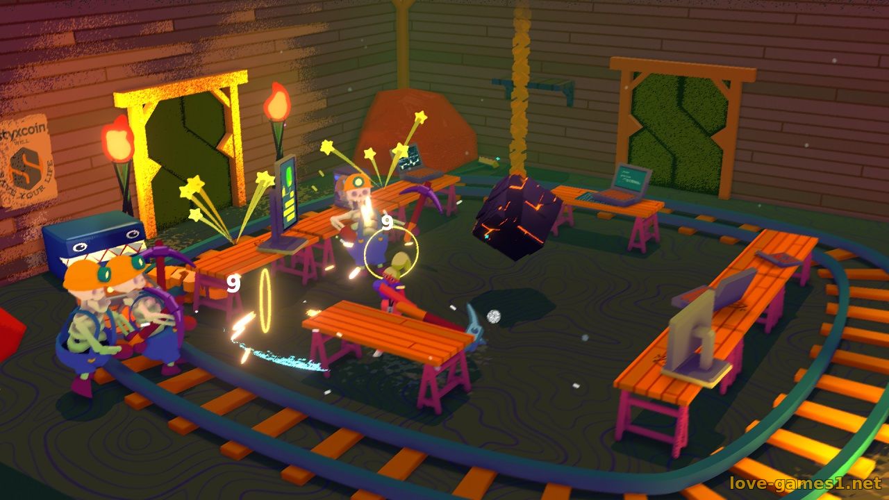 Не всем героям платят — cражайтесь среди руин разорившихся предприятий. Никогда не угадаете, что вас ждет дальше. Рабочие-фрилансеры? Сайты знакомств? Криптовалюта? Докопайтесь до истинных мотивов ваших нанимателей. Это предприятие, производящее газированный напиток под названием Fizzle, и компания-учредитель, производящая коробки по подписке и обладающая множеством дронов-доставщиков. Подружитесь с коллегами! Наймите гоблина-фрилансера! Отправьтесь на свидание со слизнем! Инвестируйте в криптовалюту! Подожгите корпоративный автобус!