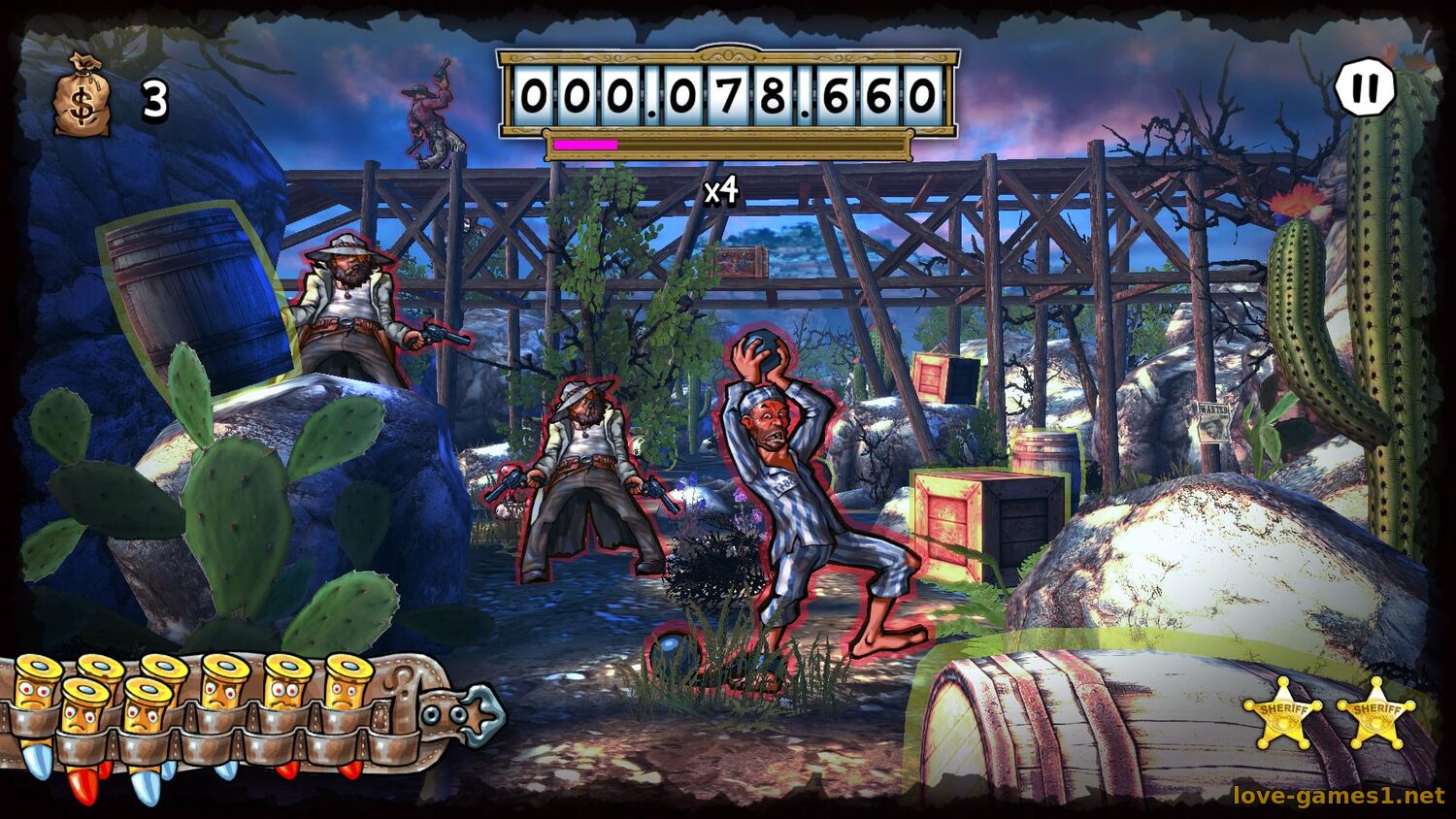 Игра полна смешных врагов, странных персонажей и сверхэксцентричных действий. От ниндзя до куриц, от роботов-ковбоев до стервятников – каждый уровень приносит новые сюрпризы в этом комедийном аркадном шутере на Диком Западе.