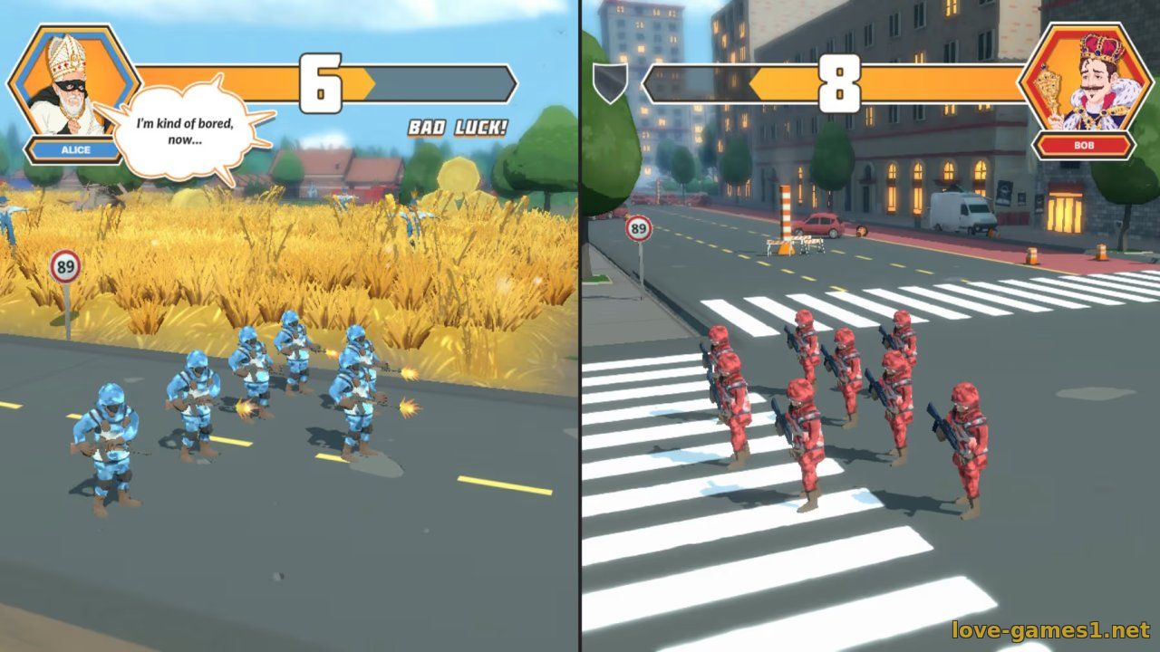 Играйте за каждого из 6 сумасбродных лидеров в обширном сюжетном режиме, включающем 40 взрывоопасных заданий. Когда ваших отрядов недостаточно, призовите своего Великого Вождя! У каждого из них есть супероружие, способное полностью переломить ход битвы.