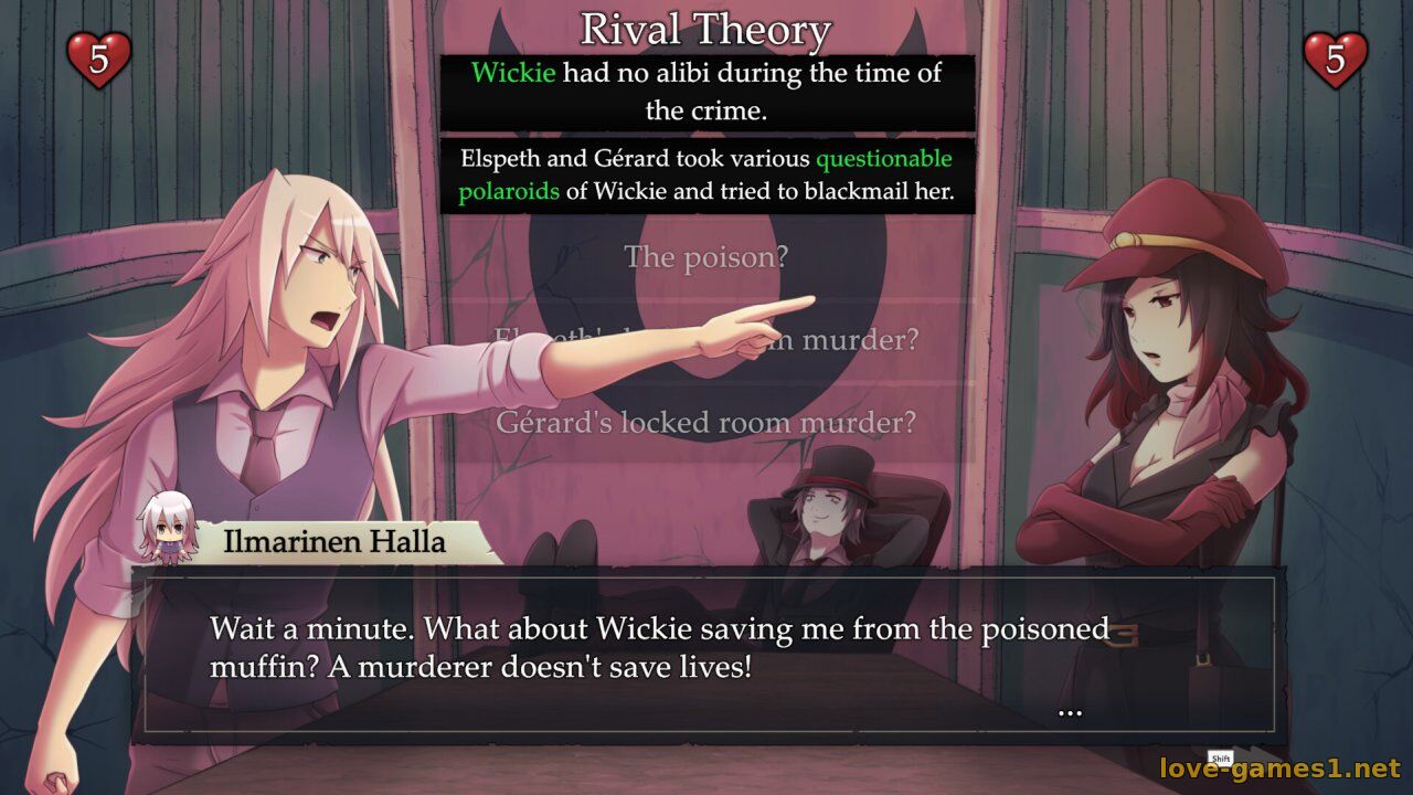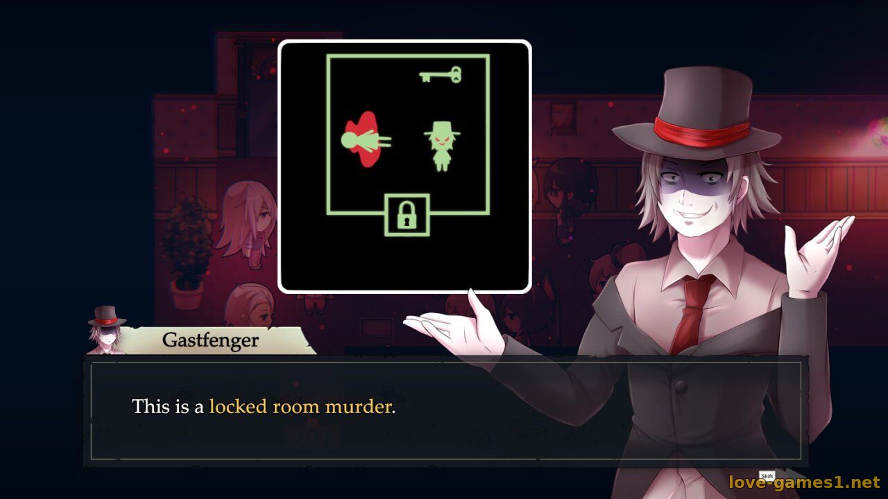 «Отель убийств» — это визуальная новелла в жанре детектива с неожиданным поворотом: и вам нужно обвинить одного из постояльцев, придумав правдоподобную теорию о том, как демон с ножницами смог это сделать.