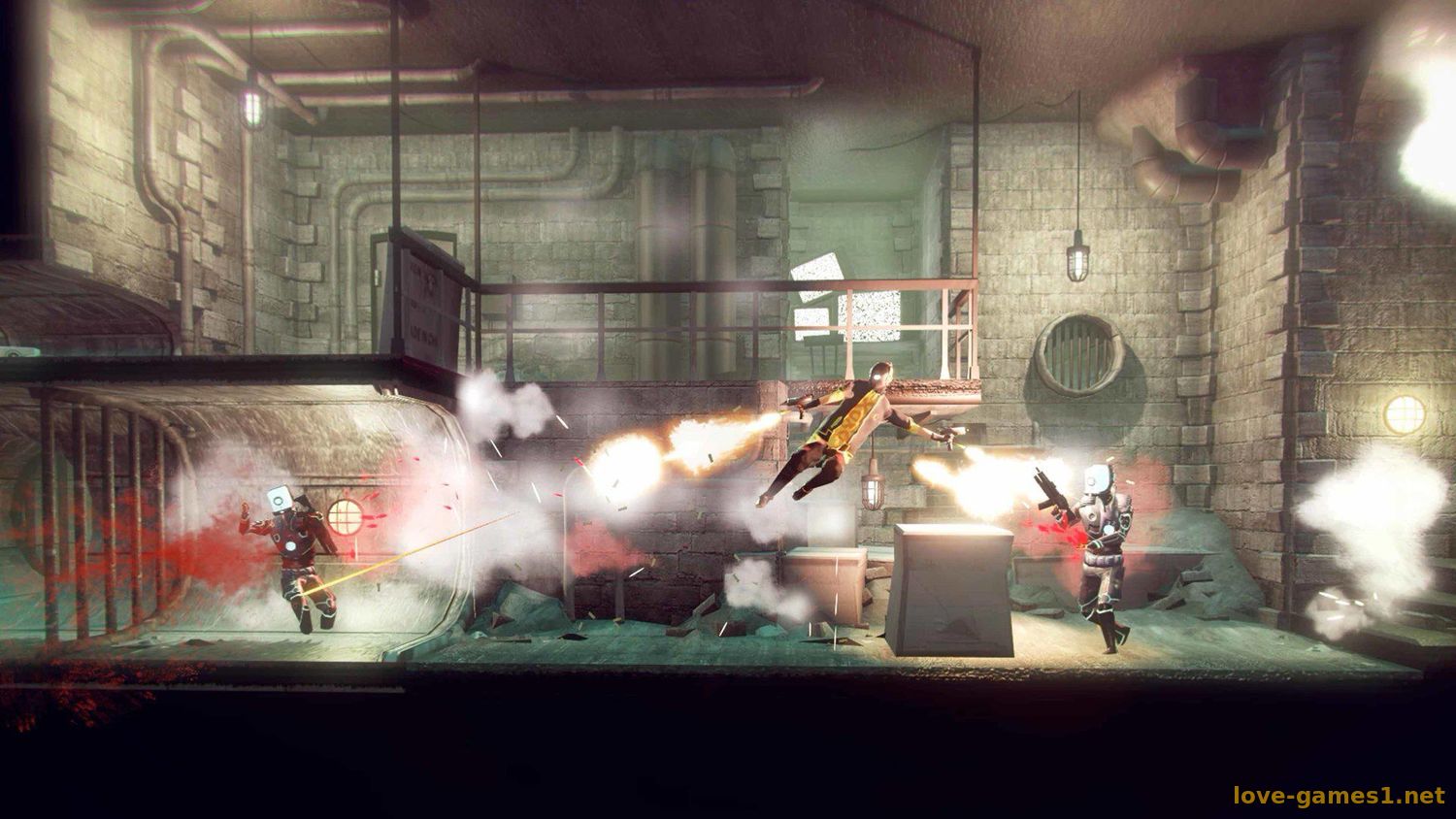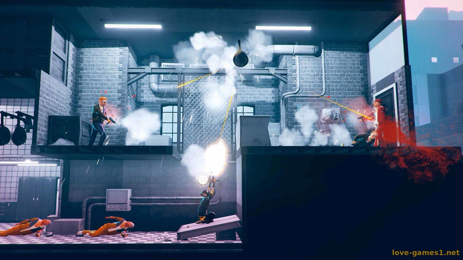 Ощутите полный контроль над своим телом и обоими оружиями и окунитесь в поток разрушения. Совершайте в воздухе различные кульбиты, целясь с двух рук во врагов или выстройте идеальную траекторию для рикошета, чтобы вырубить не ожидающего подвоха гангстера.