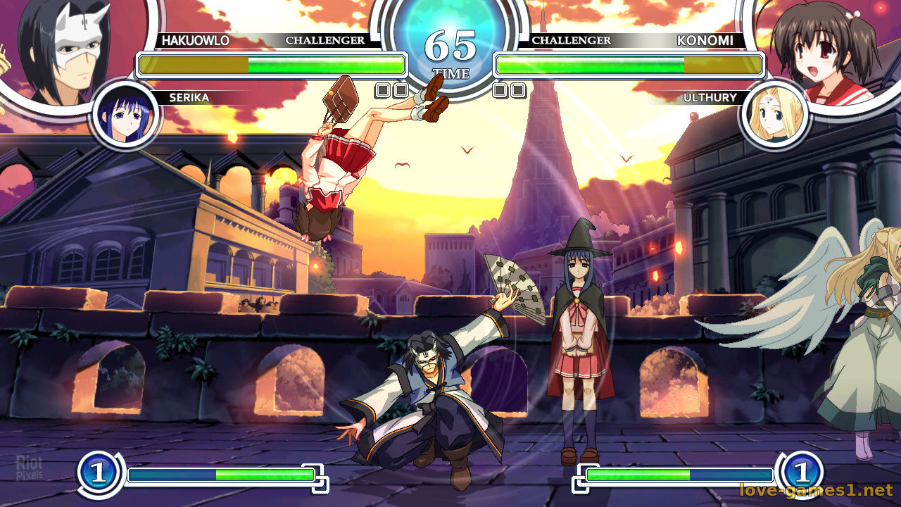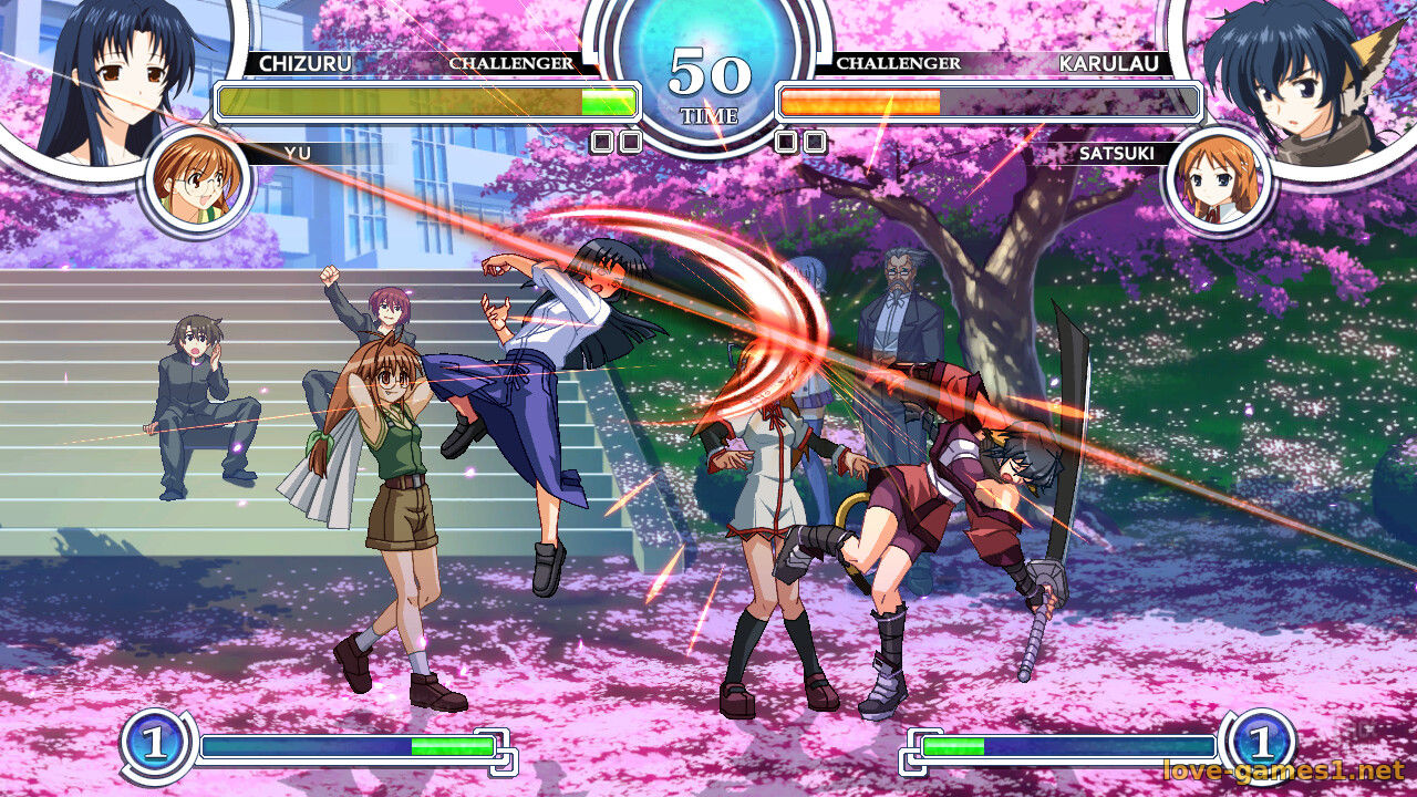 В этом файтинге собрали персонажей из разных игр Aquaplus: Utawarerumono, To Heart 2, White Album и других. Всего в ростере 26 бойцов, и каждый дерётся по-своему. При этом к основному бойцу можно взять одного из двенадцати помощников, которые иногда выскакивают во время боя. Если грамотно их использовать, можно здорово подпортить жизнь противнику.