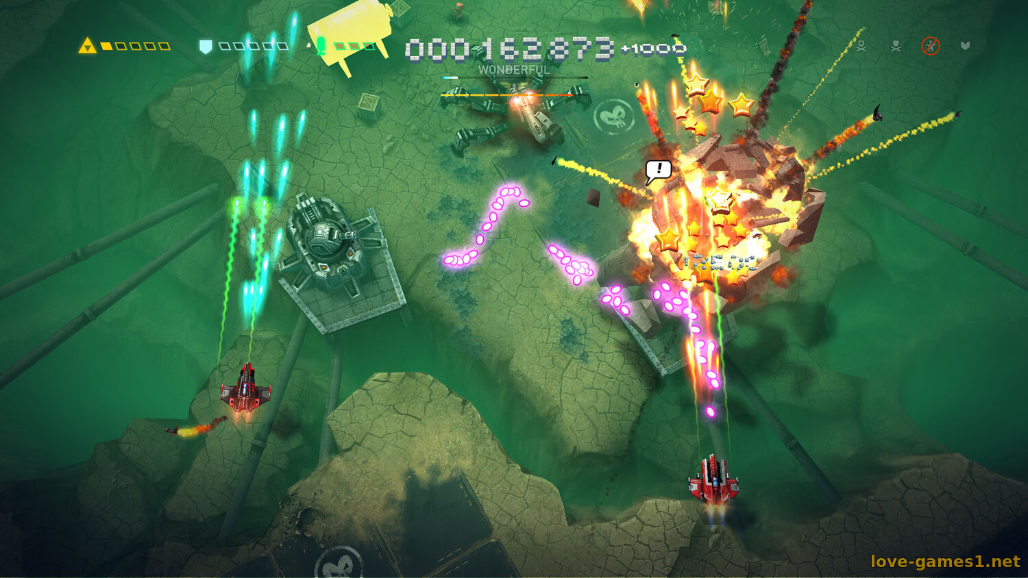 Поднимите уровень развлечения до небывалой высоты, пригласив друзей играть в локальном кооперативном режиме! Ищите самолеты, подходящие вам обоим, и вступайте в бой с самыми суровыми боссами, с которыми страшновато сражаться в одиночку.
